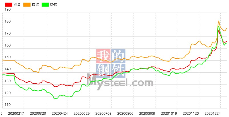 鋼坯漲至3800,5日鋼材指數小幅上漲
